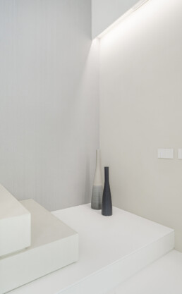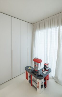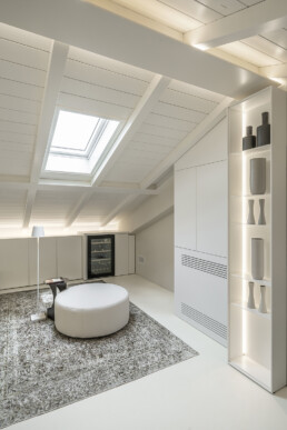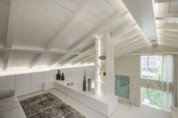 Guglielmetti Interior firma una residenza in cui ogni ambiente è un inno alla luminosità, alla leggerezza e alla continuità spaziale. La palette neutra, dominata dal bianco e dalle tonalità calde del legno, amplifica la percezione di apertura e regala una sensazione di equilibrio avvolgente.