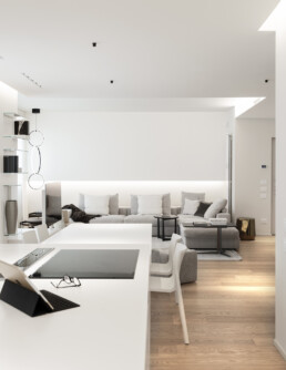 di accogliere spazi vuoti, ordinate organizzazioni, ampie aperture, in un gioco espressivo di varchi, soglie, ambigue intersezioni: la nuova realizzazione firmata Guglielmetti Interior Design anima spazi in cui le forme si esprimono senza riserve e ogni elemento può spingersi nell’esplorazione di profili e configurazioni.