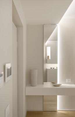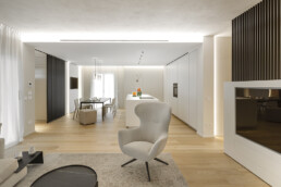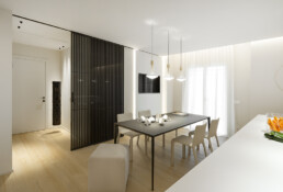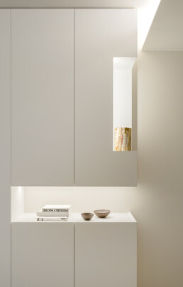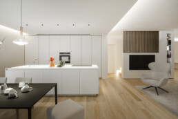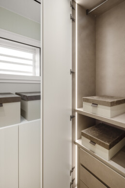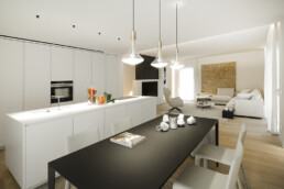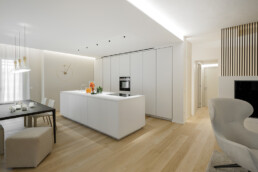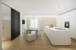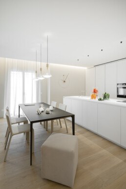 Questa attenzione ai dettagli si manifesta in ogni aspetto della progettazione della cucina, dalla scelta dei materiali alla finitura degli arredi. In questo progetto vengono utilizzati solo materiali di alta qualità, come il legno massello, il marmo e il vetro perfettamente integrati in mobili realizzati su misura.