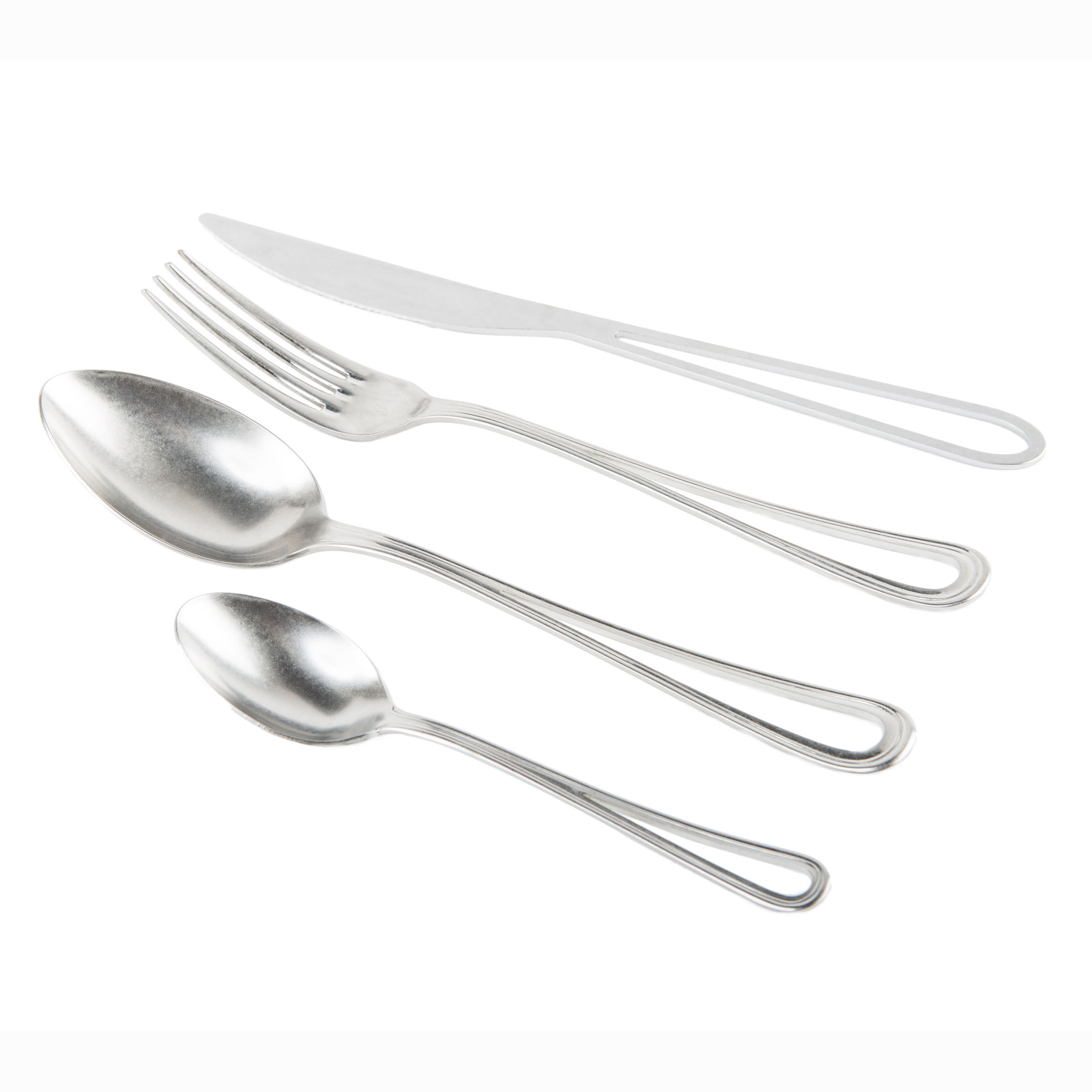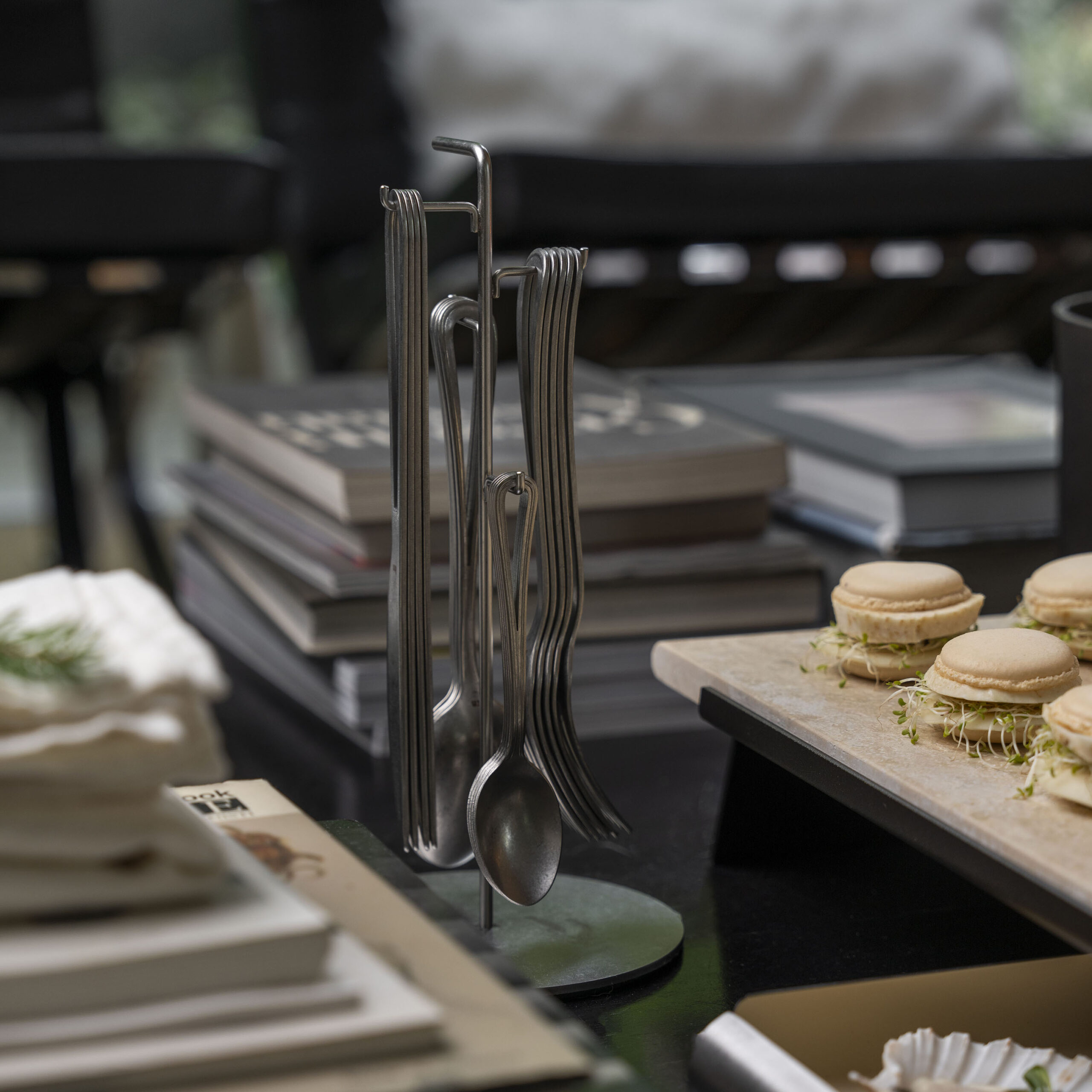 Set di 16 posate: 4 Cucchiai, 4 Forchette, 4 Coltelli, 4 Cucchiani in acciao Stonewash, compreso nel set lo Stand supporto
