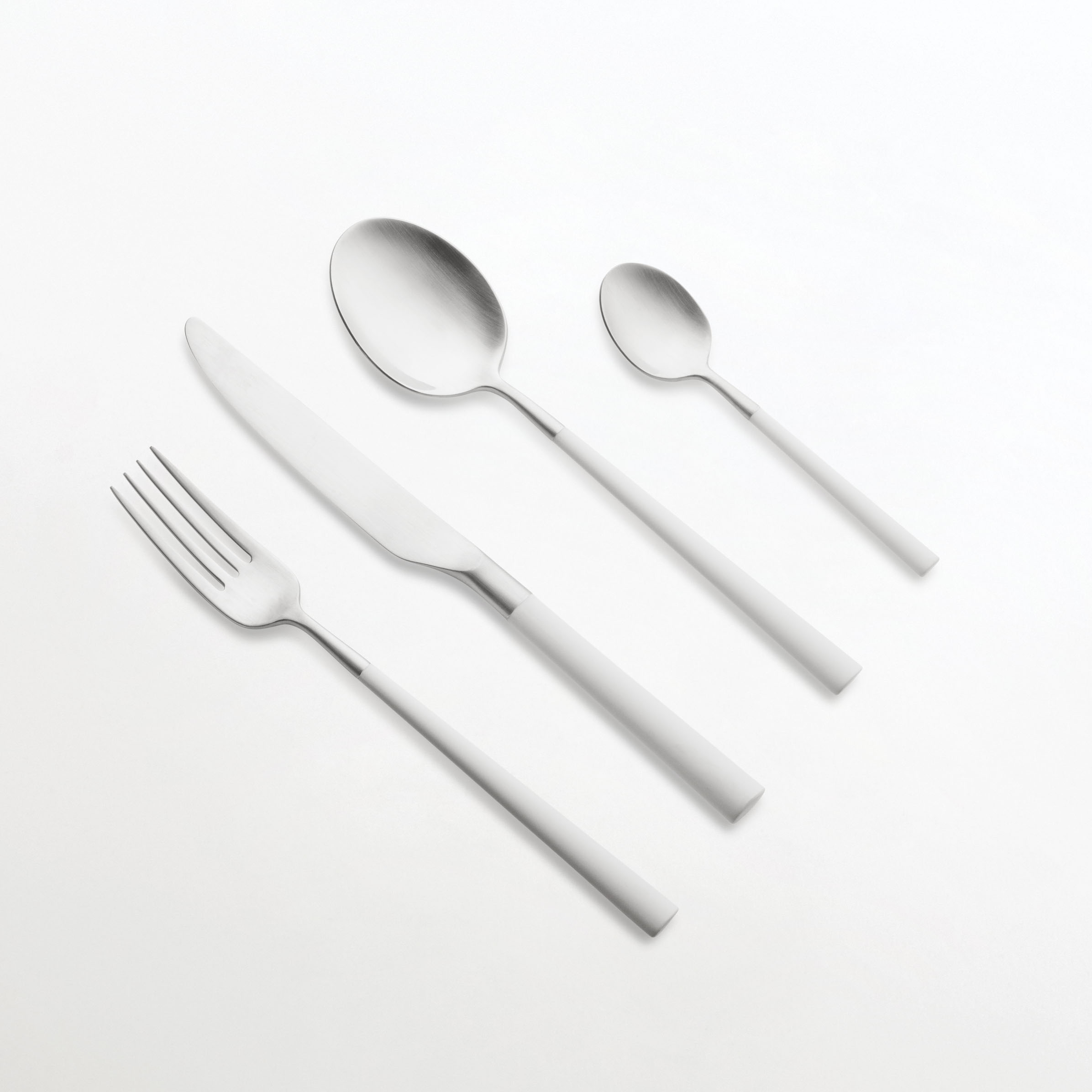 Ogni elemento del set è studiato per offrire un’esperienza tattile piacevole e bilanciata, trasformando il gesto quotidiano del mangiare in un rituale di estetica e armonia. Il design minimale le rende perfette sia per tavole modernissime sia per ambienti più classici che desiderano un dettaglio di stile sobrio ma distintivo.