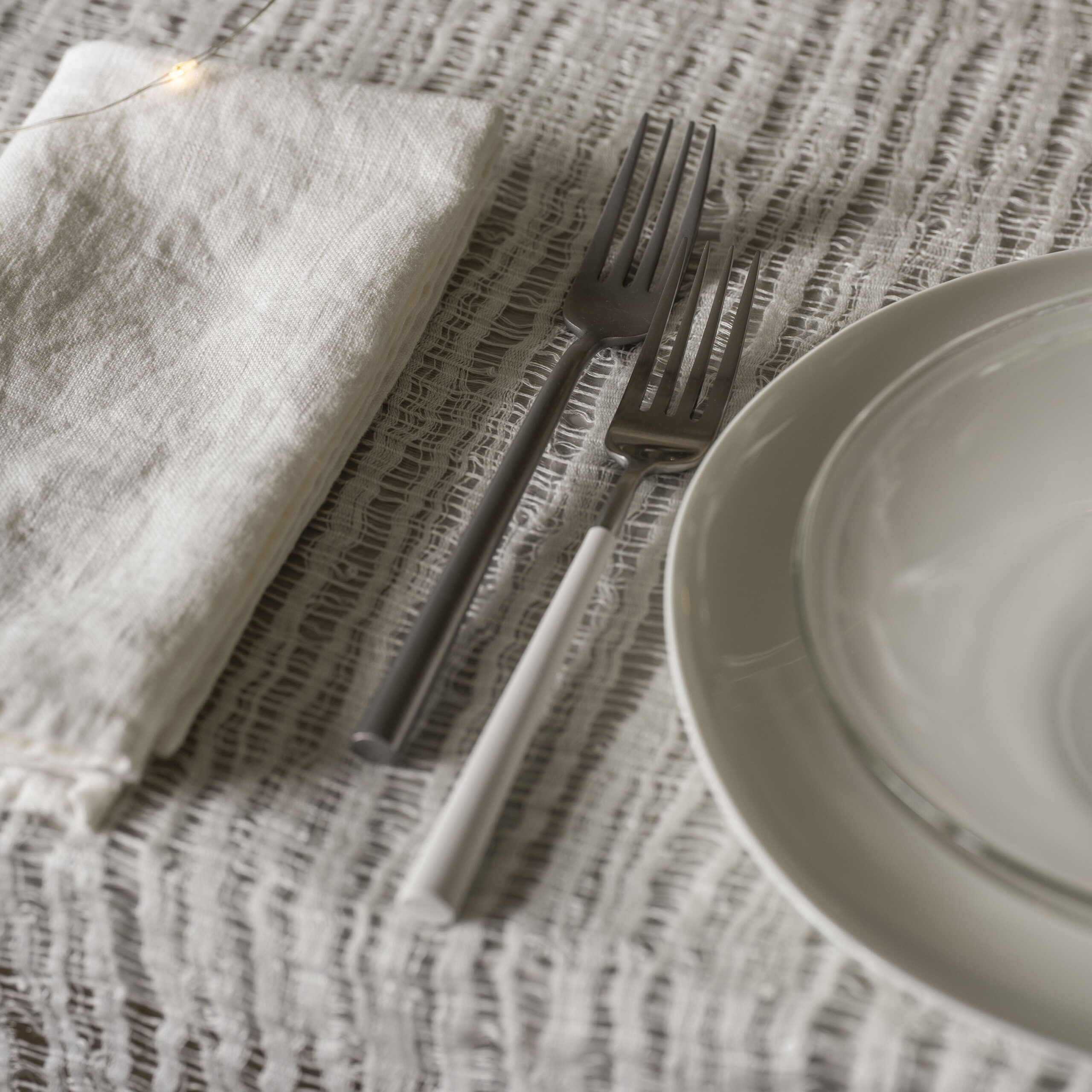 Un’eleganza che nasce dalla sottrazione. La collezione 801 White interpreta la tavola contemporanea con un tratto essenziale e una purezza formale che conquista al primo sguardo. Le linee sono nette, pulite, rigorose; l’acciaio satinato cattura la luce con una morbidezza vellutata, mentre il manico cilindrico, completamente opaco, dona alle posate una silhouette scultorea e contemporanea.